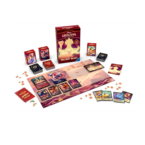 Having reforged the broken Hexwell Crown, Jafar has transformed into the formidable Supreme Sorcerer of Lorcana. It's now up to players to sneak into his stronghold and steal back the Reforged Crown before he becomes all-powerful. In this game of keep-away, a ruthless underling or item from Jafar's deck is all he needs to seize the crown. But make it through the traps and obstacles he's set up throughout the palace, and players will recapture this source of power. Whether players go after the Crown on their own or team up with a friend, the two player decks are designed with characters, items, and more that will help them on their daring quest. Plus, with four battlegrounds to choose from, players can determine the difficulty level that's right for them.
