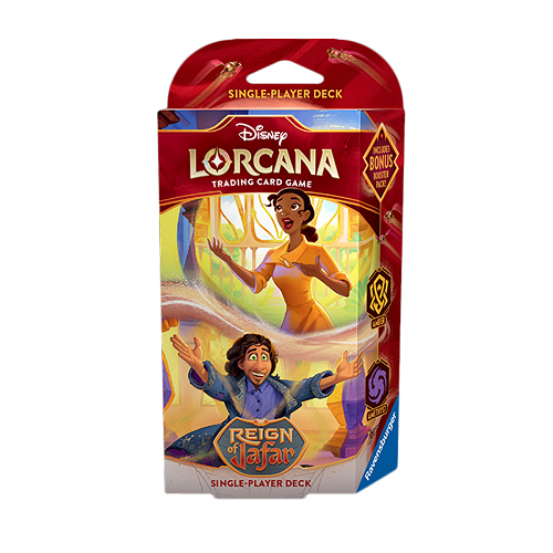 To play Lorcana, each player will need a deck of sixty cards. Ready-to-play starter decks contain a preconstructed deck with a specific card list. If you're new to trading card games, or if you want to experience the game with a deck designed and tested by Team Lorcana, this is a good place to start.
